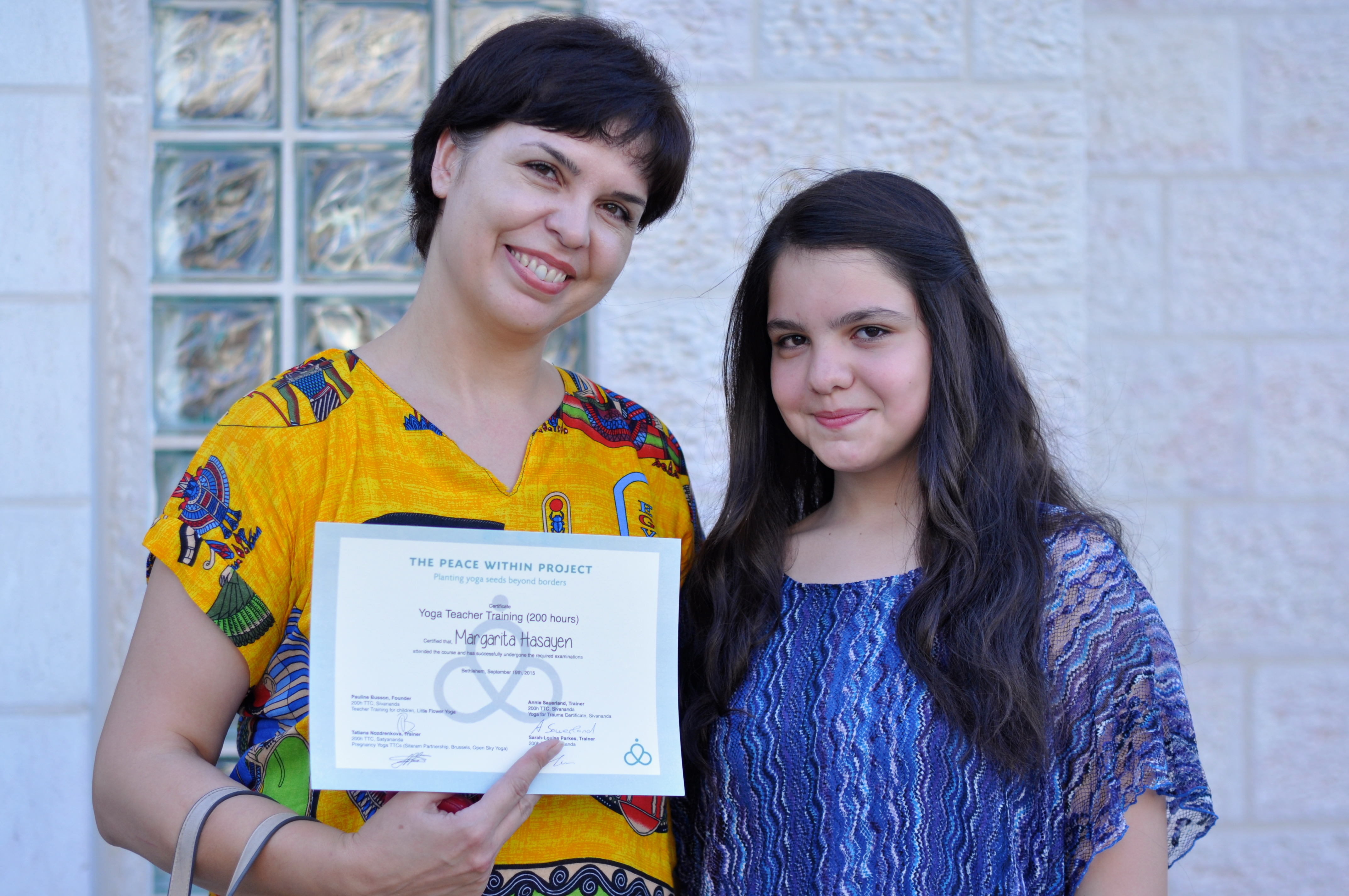 “When I started yoga a year ago, I immediately loved it. My life is so intense and full of stress: I work and volunteer with several organisations counselling women in rural areas. And I’m a mother of 4. Yoga helps me to release my stress and to remain grounded. I was so happy when I learned I had been chosen for the training! I’ll teach classes to women in villages around Bethlehem. They are under so much pressure… from the family, society, poverty, war, etc.”